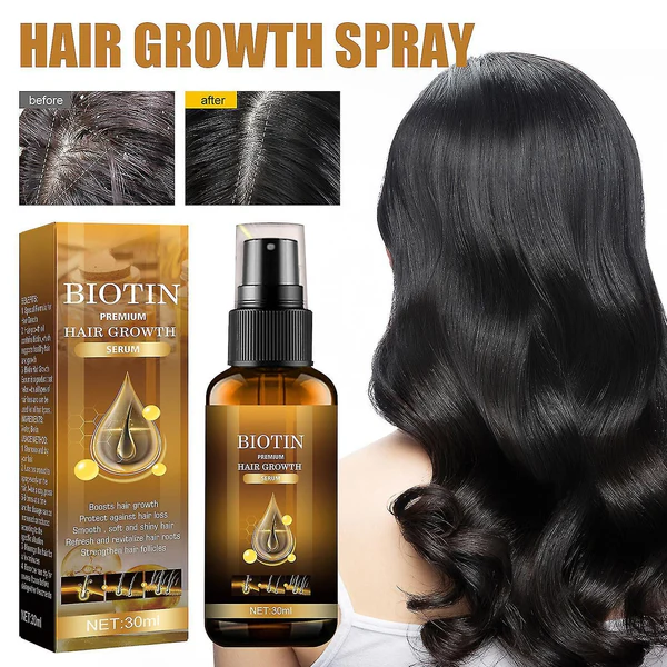Moonbiffy™ Biotin Premium Hair Growth Serum penetrates deep into the scalp to nourish hair follicles and maintain a healthy scalp environment. The spray supplies the hair follicles with nutrients and oxygen. also contributes to the enlargement of hair follicles. which promotes growth thicker. stronger hair. Biotin Premium Hair Growth Serum when used daily,can help promote healthy hair development.